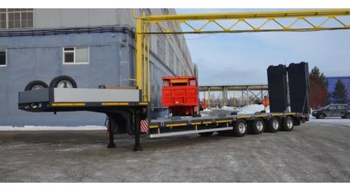 Низкорамный полуприцеп 94184-010-0И00 с гидравлическими трапами двойного сложения имеет грузоподъемность 51,5 тонны. Габариты погрузочной площадки трала составляют 11500 мм в длину и 2530 мм в ширину (3030 мм с уширителями). Полуприцеп-тяжеловоз оснащен пневматической подвеской. 4-я ось – поворотная. Таким образом, трал получает хорошую маневренность, равномерное распределение нагрузки на оси и возможность регулировки высоты при проезде под мостами и путепроводами. К особенностям этого полуприцепа можно отнести оригинальную конструкцию гидротрапов.Они двойного сложения, что уменьшает угол въезда на трал (8°) и могут смещаться наружу на 250 мм. Это позволяет точнее выставлять трапы при погрузке негабаритной техники. Еще один важный момент - для подъема/опускания трапов используется автономная гидростанция. Соответственно, не имеет значения – гидрофицирован тягач или нет – трапы будут работать в любом случае. Этот трал оснащен подъемником запасных колес, боковой защитой и инструментальным ящиком, отбойными брусьями и дополнительными опорами для заезда техники.